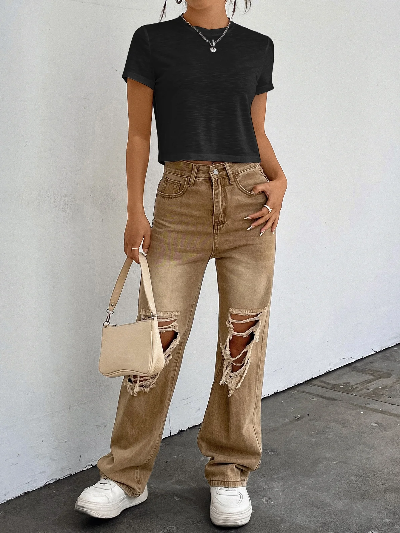 American black knitted short-sleeved T-shirt for women's summer 2025 new style, slimming and form-fitting short top