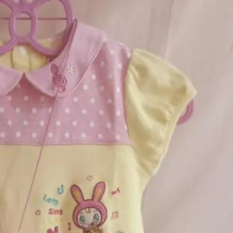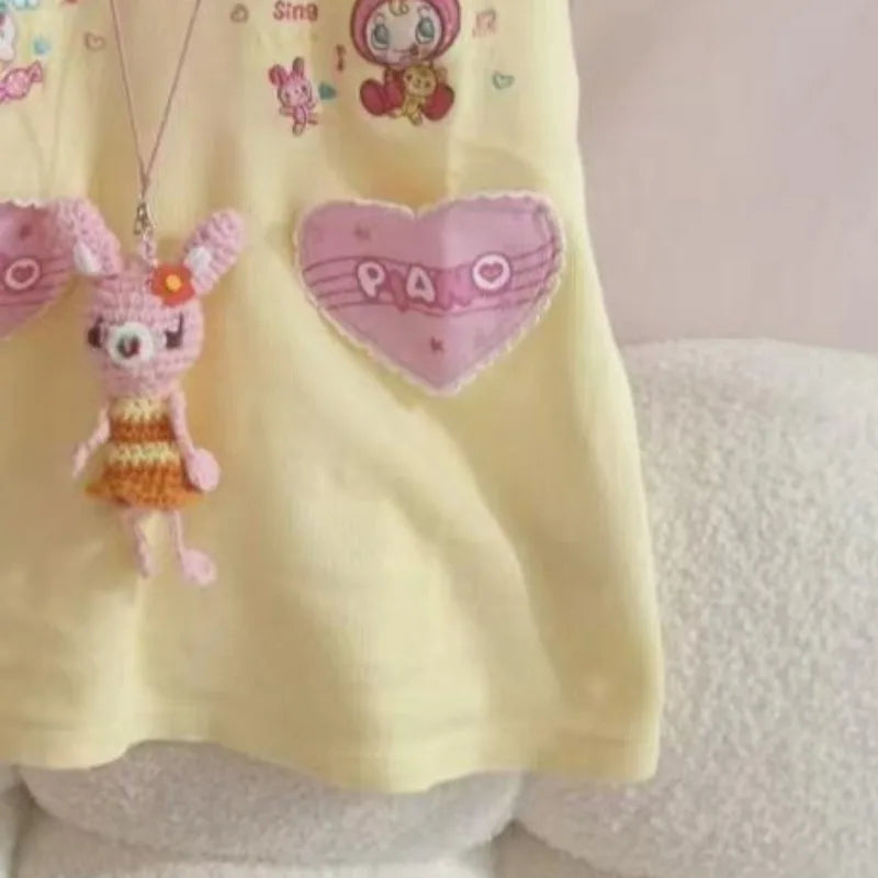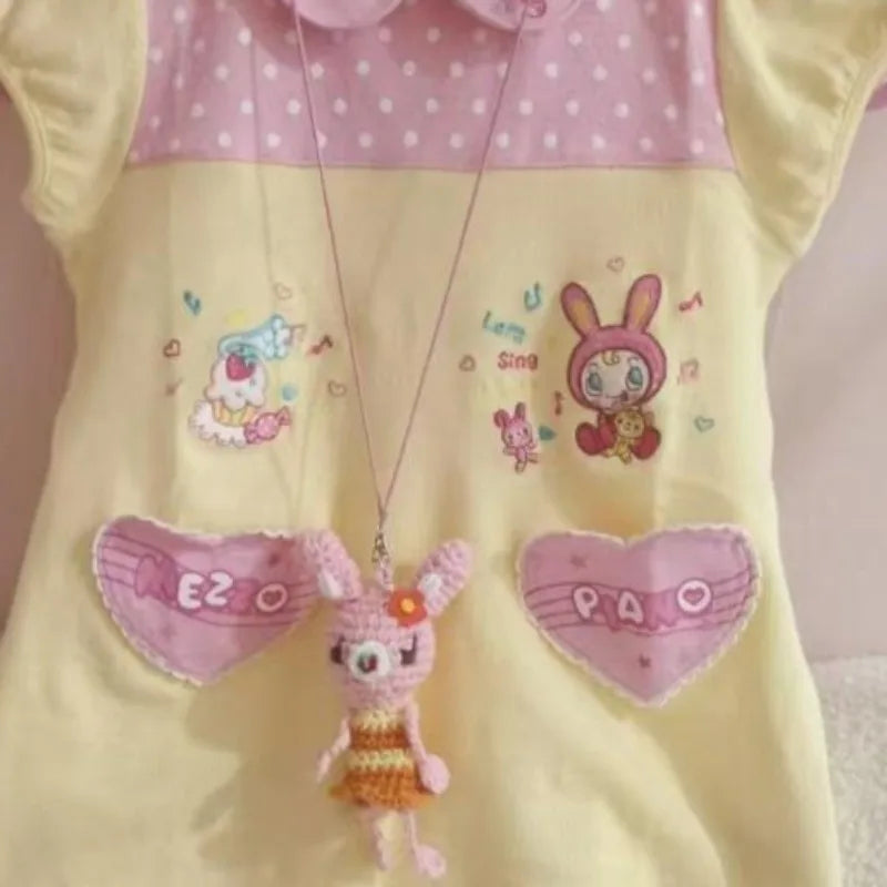 Kawaii sweet T-shirt Japanese subculture cute cartoon printed T-shirt Harajuku stitching short-sleeved T-shirt women's chic tops