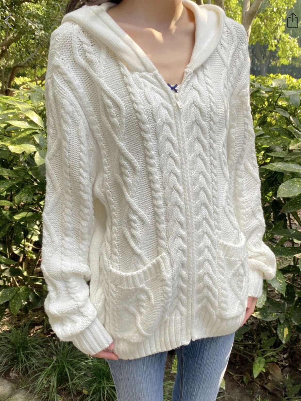 Twisted Flower Pockets Knit Sweater Cardigan Women Winter Long Sleeve Hooded Zip-up Hoodie Solid Simple Sweaters Coat Y2K Tops