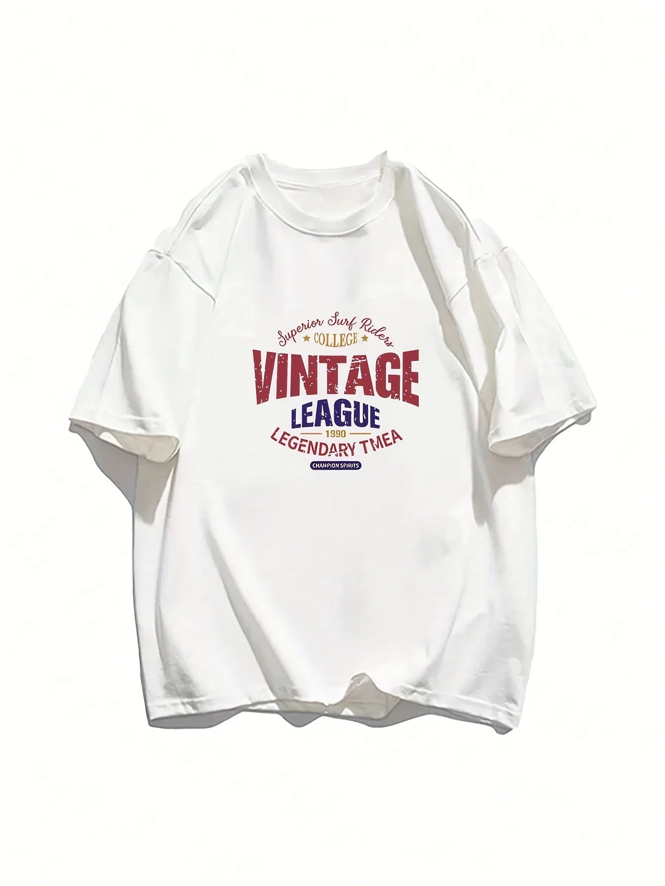 Vintage League Letter Print Womens T-Shirts Summer Fashion Cotton Tops Comfortable O-Neck Short Sleeve Soft Oversize Clothes