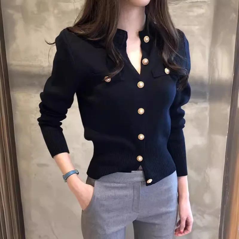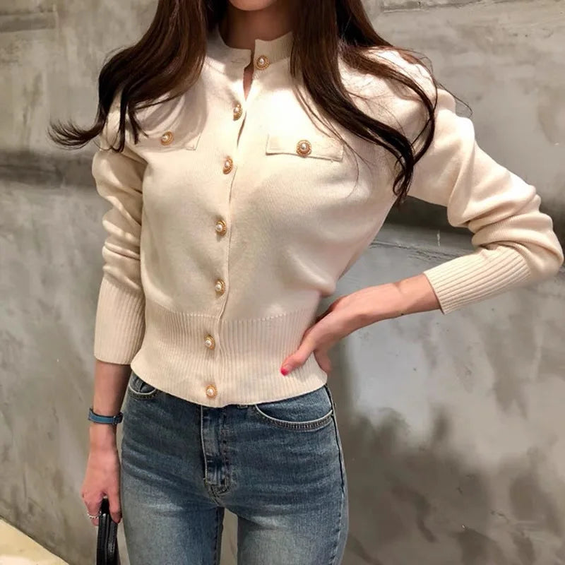 Autumn Winter Long Sleeve Cardigans Top Fashion Women Single Breasted Slim Solid Sweaters Knitted Korean Warm Commute Cardigan